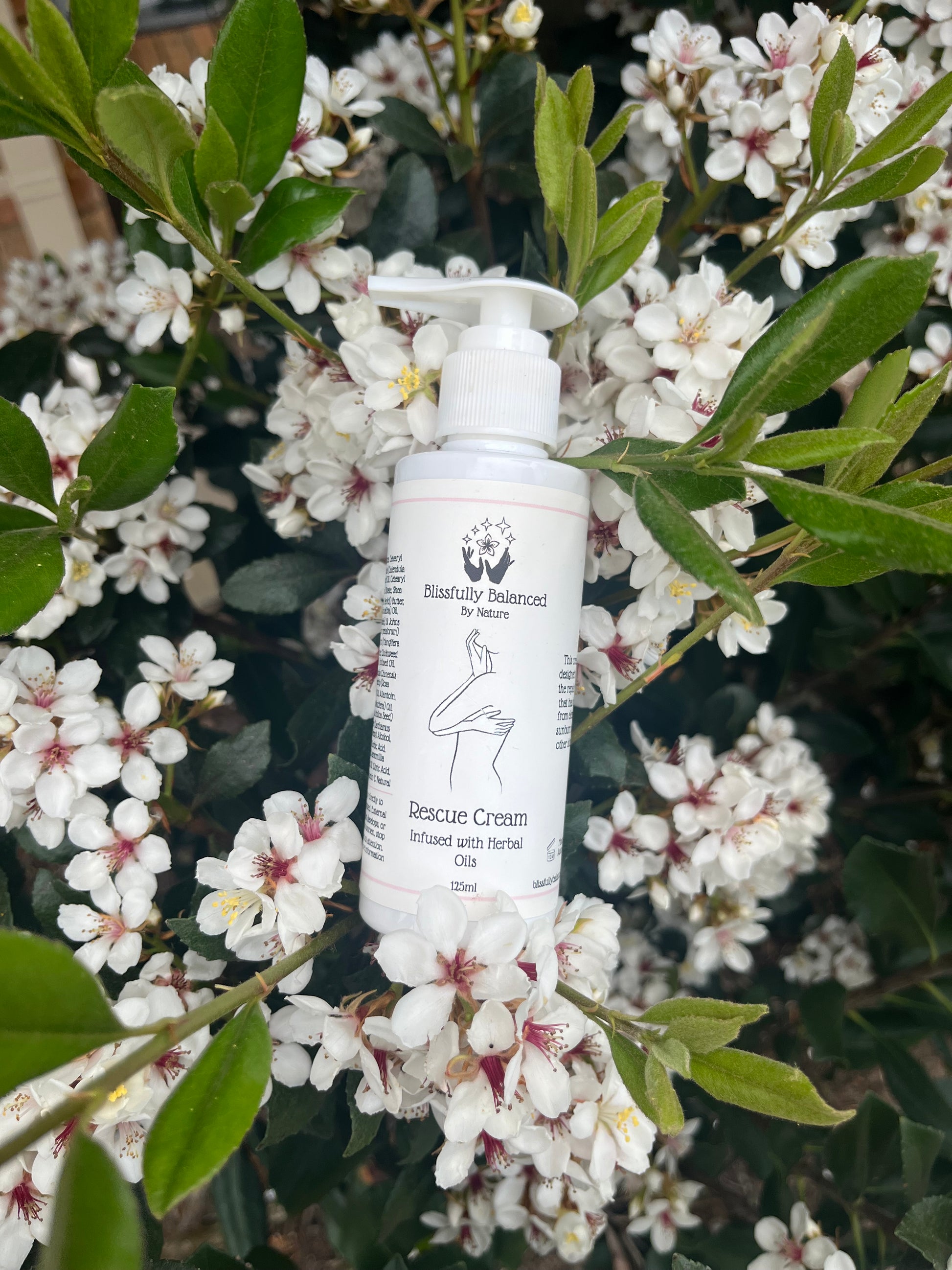 Our Rescue Cream is a deeply restorative formula made for skin that needs extra attention. Rich mango, kokum, and shea butters provide intensive moisture, while coconut and hemp seed oils replenish essential fatty acids to nourish and protect. Healing botanicals of Chickweed, St. John’s Wort, and Calendula help calm irritation, reduce redness, and support skin recovery.